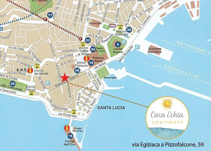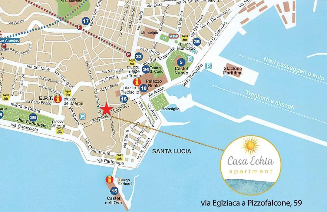Appartamento Casa Echia Napoli, di 80 m², si trova nel quartiere Lungomare Caracciolo e offre un rapido accesso alla Piazza del Plebiscito, che si trova a soli 7 minuti a piedi.